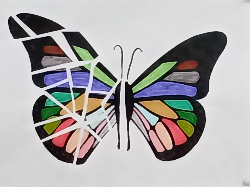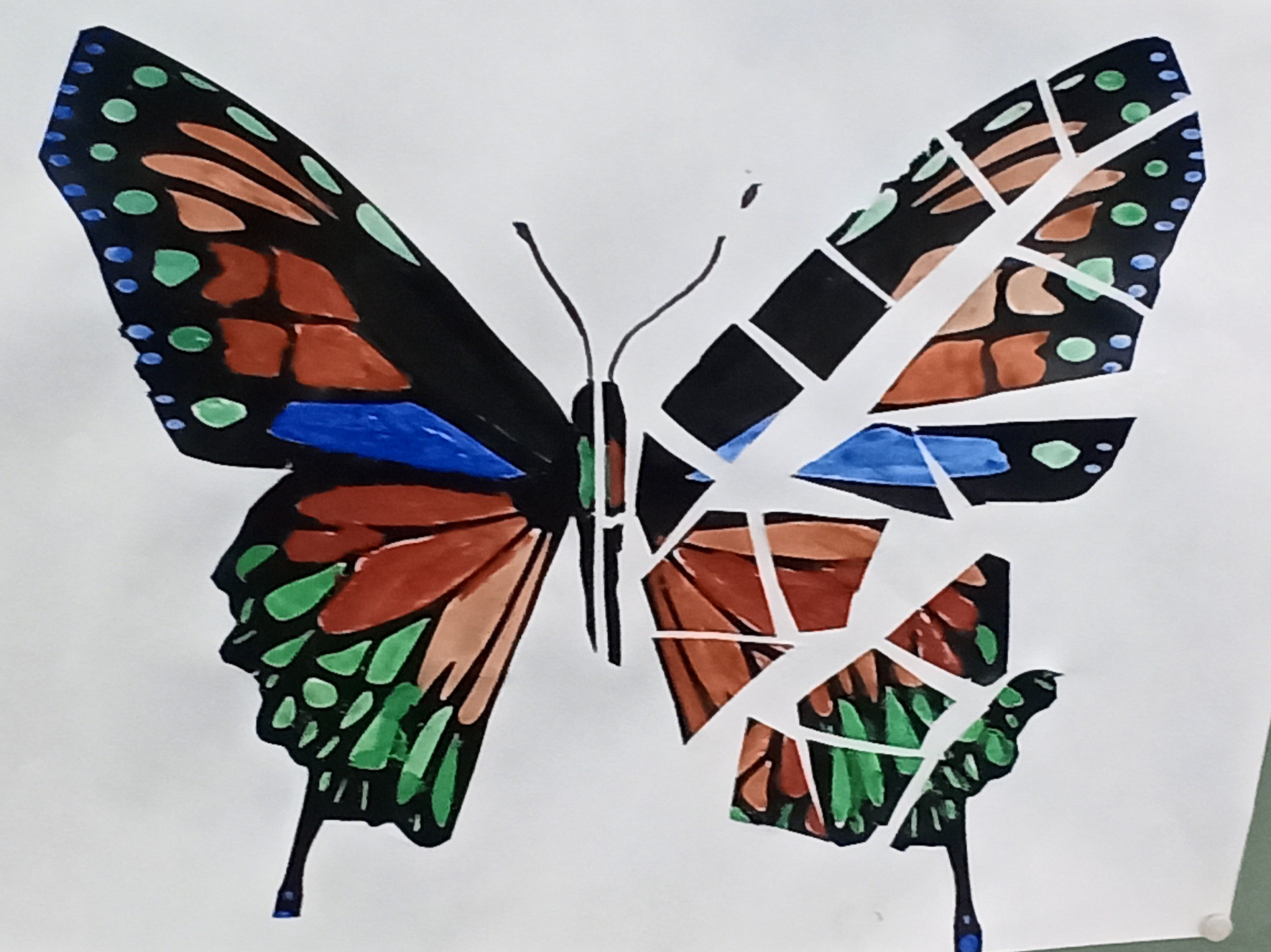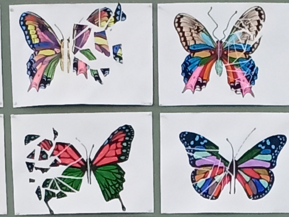 Schmetterlinge aus dem Kunstunterricht der 7. Klassen.